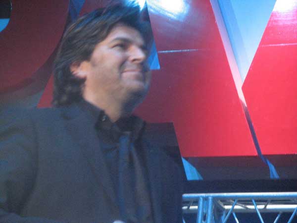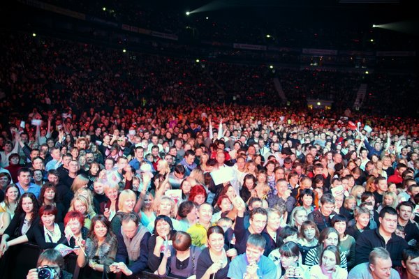 В зале звучала та же разогревающая аудиокомпиляция, что и два дня назад в «Олимпийском». К сожалению, до Шатунова диск докрутиться не успел — а жаль, хотелось бы взглянуть на реакцию уже заполнившегося зала 😉