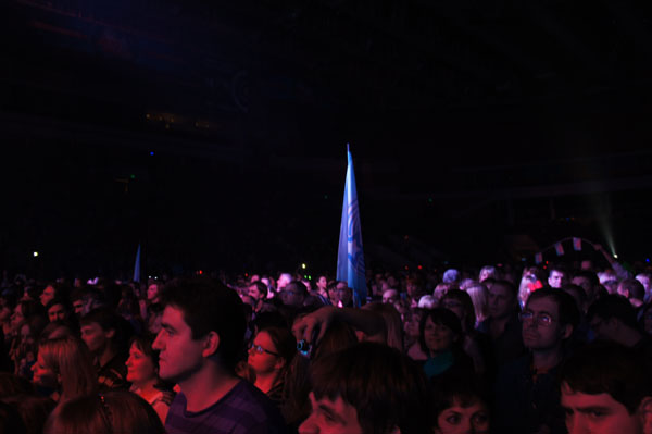 Зал погрузился во мрак. На сцене начали готовиться инструменты. Публика замерла в ожидании. |