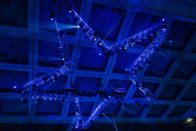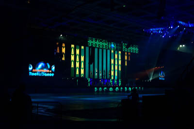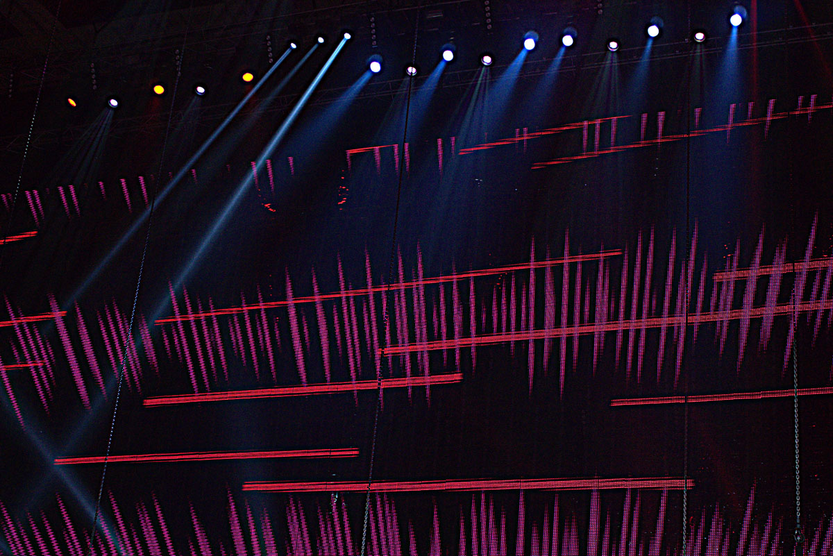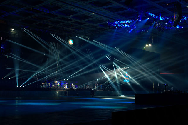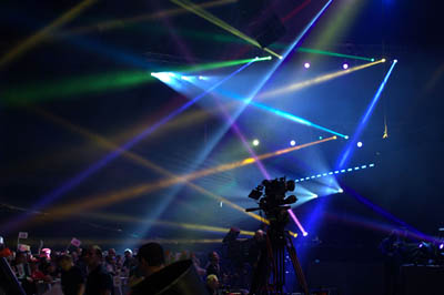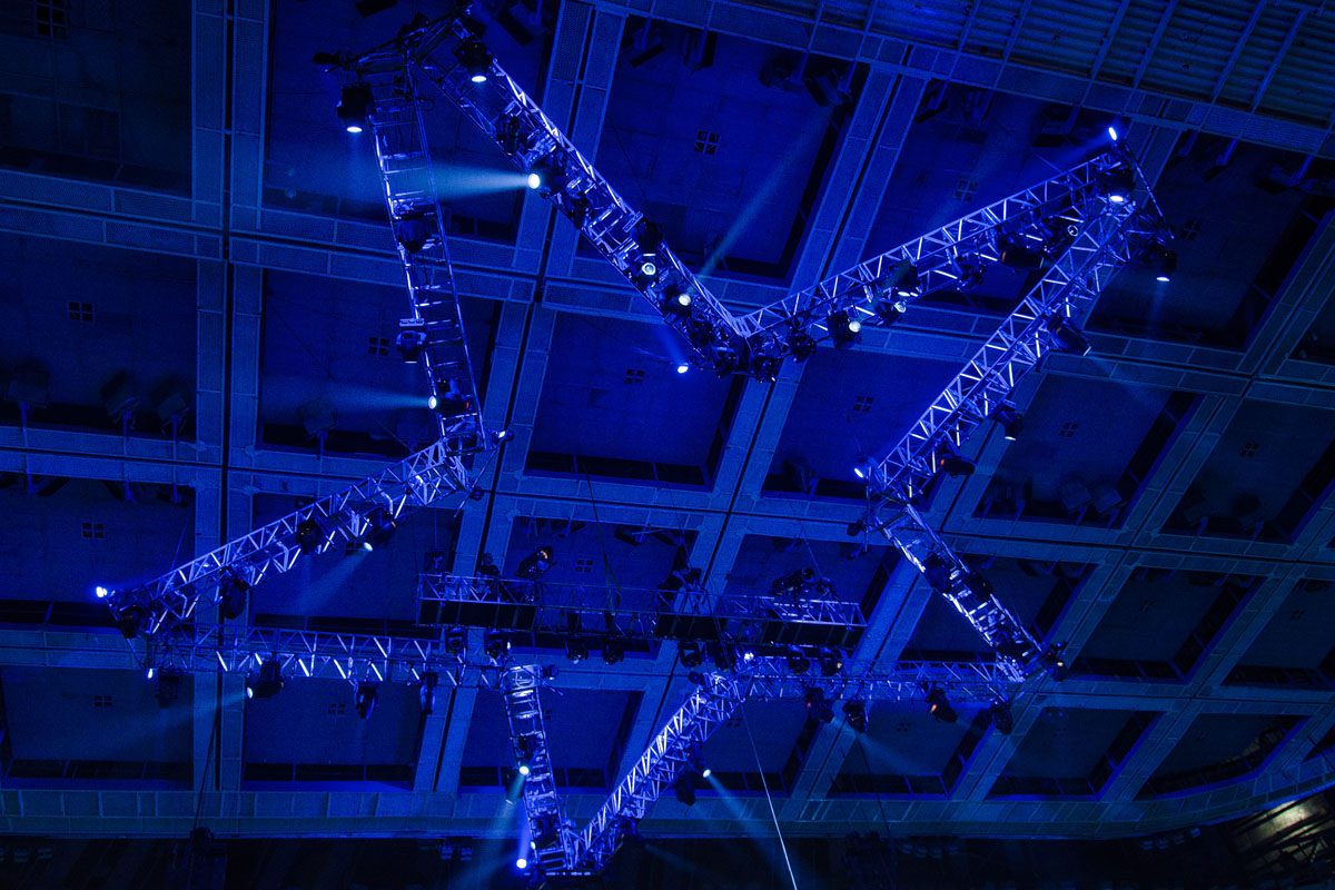 приготовления к шоу. Тестируются экраны, настраивается свет, идет