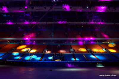А в зале идут последние приготовления к шоу, завершается саундчек, настраивается видеоаппаратура.