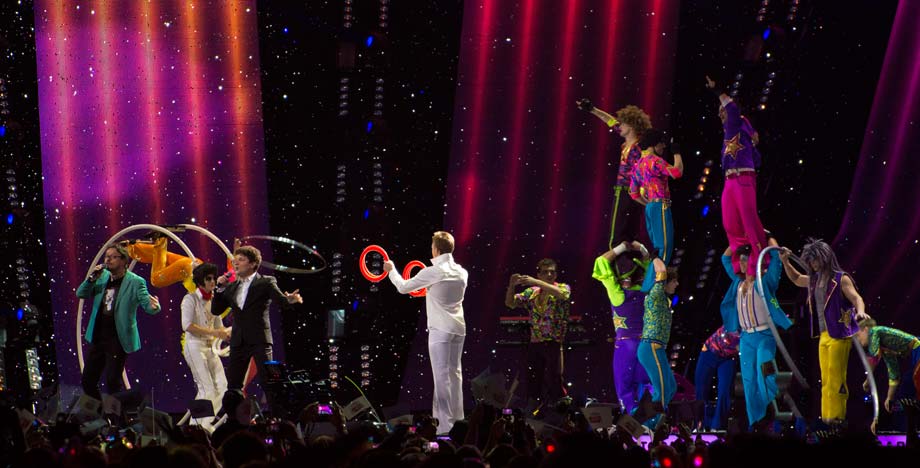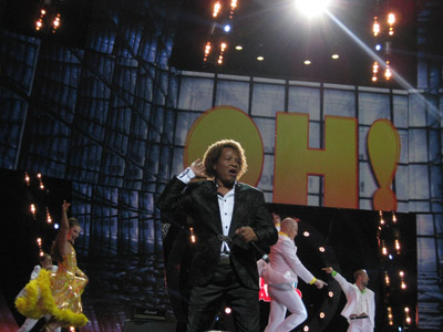 Помимо звездного состава артистов, нам обещали суперзвук, суперсвет и супершоу. Впрочем, в этом никто и не сомневался – в плане технического оснащения Фестиваль Авторадио всегда не только удовлетворял самую взыскательную публику, но и считался эталоном для подражания. Не стал исключением и этот раз. После представления 3D-технологий и экрана размером во всю сцену, нас удивили хитрым экраном полусферической формы, а также шикарнейшим звуком. Мы насчитали семь(!!!) дополнительно установленных в зале звуковых порталов. Ну и, конечно же, традиционно уникально выставленная линия света – несмотря на ощущение блаженной, домашней, уютной приглушенной яркости, в зале не было темно ни на минуту, и все элементы декораций, а также, разумеется, артисты, радовали глаза ежесекундно.
