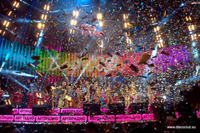 Эффект погружения в дискотеку достигнут на все сто. Четко выдержанный ритм, специально выстроенный таким образом, чтобы чередовались композиции динамичные и медленные, чтобы не снижать темп, но и дать зрителям отдохнуть; виртуальные ведущие, быстро и задорно объявляющие артистов с экранов; брендвойс, интригующий словами «Встречайте»…