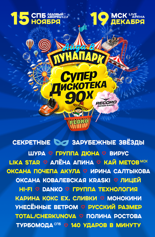 Встречайте главный ретромегадэнс страны – Супердискотека 90-х Радио Рекорд – с новой постановкой «Айда в Лунапарк!».